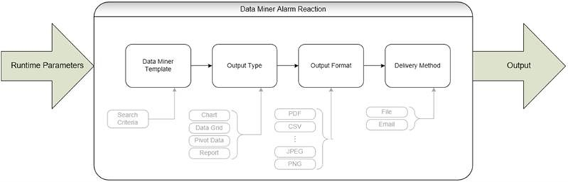Die Versanddatenquelle extrahiert die erforderlichen Datenfelder; andere Datenquellen können nach Bedarf hinzugefügt werden. Der freie Text, den der Bediener für eine Sendung eingegeben hat (falls vorhanden), wird in die Ausgabe der Versanddatenquelle aufgenommen. Die resultierende DataMiner-Arbeitsmappe wird als Vorlage konfiguriert, die zu einer DataMiner-Alarmreaktion hinzugefügt wird.