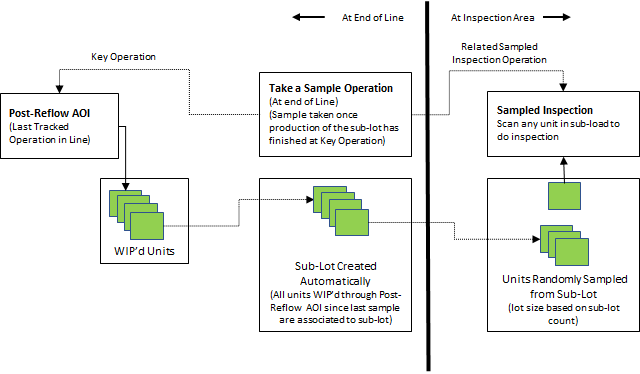 FactoryLogix in-process quality sampling allows you to perform sampled inspections more frequently by dynamically breaking down a production lot into smaller sub-lots, then performing a sampled inspection on the sub-lots.